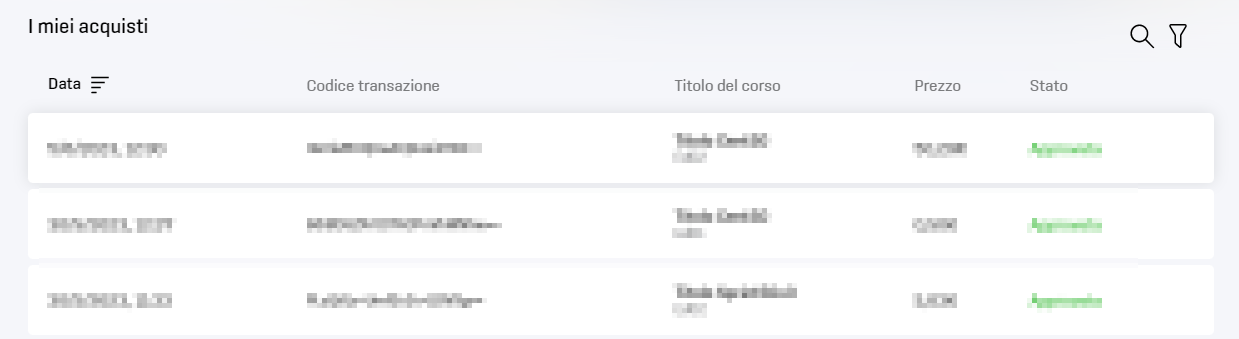 In questa scheda del profilo utente viene mostrato l'elenco delle transazioni effettuate dall'utente.
